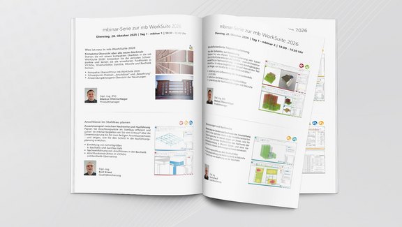 Über die hier bereits aufgeführten Neuerungen hinaus zeigt Ihnen die Broschüre „Was ist neu in mb WorkSuite 2026“ alle Neuerungen und Erweiterungen im Detail. Die Broschüre "Was ist neu in mb WorkSuite 2026" begleitet die neue Version und gibt in gewohnt kompakter Form einen umfassenden Überblick über die mb WorkSuite 2026.