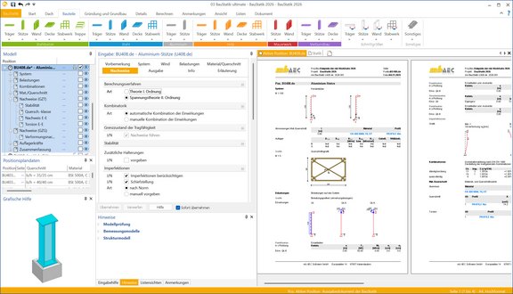 Alle Berechnungen sind vollständig in die dokumentorientierte Arbeitsweise der mb WorkSuite eingebunden und ermöglichen eine effiziente, prüffähige Planung von Aluminiumtragwerken und -bauteilen im Hoch- und Ingenieurbau.