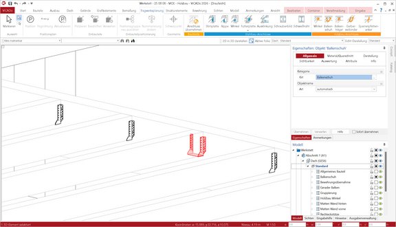 Diese Verbindungsmittel werden durch den Tragwerksplaner dimensioniert und sind in einer erforderlichen Stückzahl auszuführen. Bei einer konsequenten Durchbildung der Anschlüsse im virtuellen Gebäudemodell in ViCADo erfolgt eine Mengenermittlung ohne weiteren Aufwand.