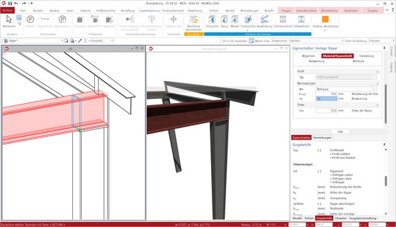 Tragwerke im Stahlbau bestehen nicht nur aus einzelnen Bauteilen wie Stützen, Balken oder Pfetten, sondern auch die Verbindungen zwischen diesen Bauteilen müssen geplant und dimensioniert werden. Hierfür werden spezielle Bauteile wie z.B. Kopfplatten oder auch Rippen benötigt. Für die Erstellung von Stahlbau Anschluss- und Detailpunkten bietet ViCADo in der mb WorkSuite 2026 neue Bauteile, die genau für die Aufgabe optimiert und konzipiert wurden.