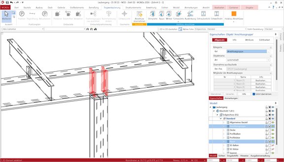 Mit der Übernahme der Anschluss-Situation bleibt eine dauerhafte Verbindung zur Position in der Statik erhalten, so dass jederzeit eine Aktualisierung der Ergebnisse aus der BauStatik-Position auf das ViCADo-Modell durchgeführt werden kann.