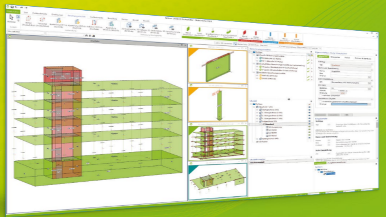 Der StrukturEditor verbindet im Rahmen der modellorientierten Tragwerksplanung die Erdbebenbemessung mit einem durchgängigen Workflow. Berechnungsmodelle aus MicroFe können nach der Erdbebenanalyse direkt im StrukturEditor verwaltet und für weitere Nachweise genutzt werden. So lassen sich die ermittelten Ersatzlasten komfortabel in neue Berechnungsmodelle, beispielsweise für die Bemessung von Stahlbetonwänden, integrieren.