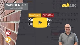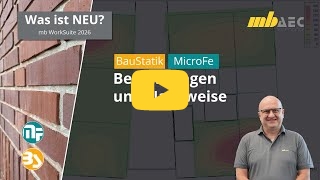 Im Bereich der Tragwerksplanung bietet die mb WorkSuite verschiedene Anwendungen wie BauStatik, MicroFe und ViCADo, die sowohl einzeln als auch kombiniert eingesetzt werden können. Im Rahmen der mbinar-Serie liegt der Fokus auf einem durchgängigen, modellorientierten Einsatz der mb WorkSuite. Die Vorträge zeigen, wie effizient der Datenaustausch zwischen den Anwendungen funktioniert. Viele der gezeigten Arbeitsschritte und Tipps lassen sich auch auf die Einzelanwendung übertragen. Seien Sie live mit dabei und erleben Sie die Leistungsfähigkeit der mb WorkSuite 2026 in Aktion! Wir freuen uns auf Ihre Teilnahme.